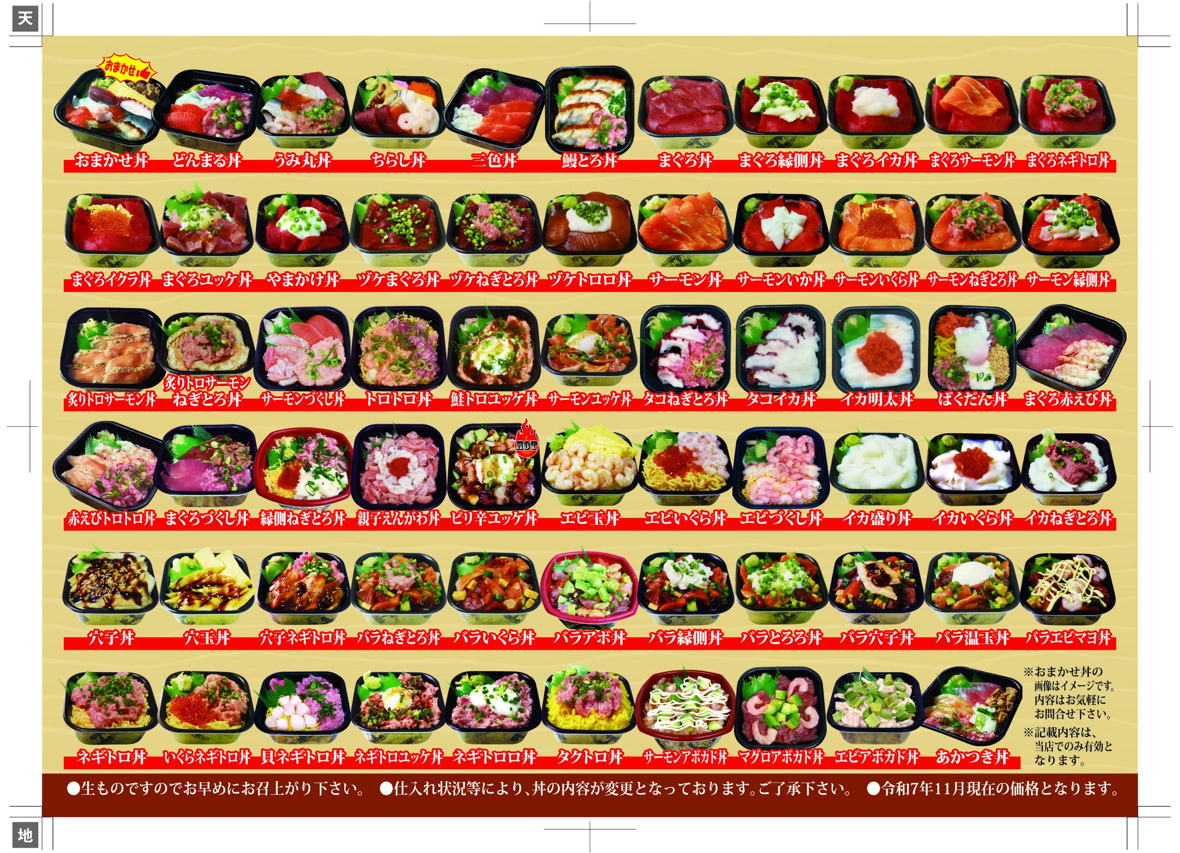 どの丼も新鮮で美味しいのに、この価格は驚きです!種類も豊富でランチやテイクアウトにも最適、毎日でも通いたくなります。