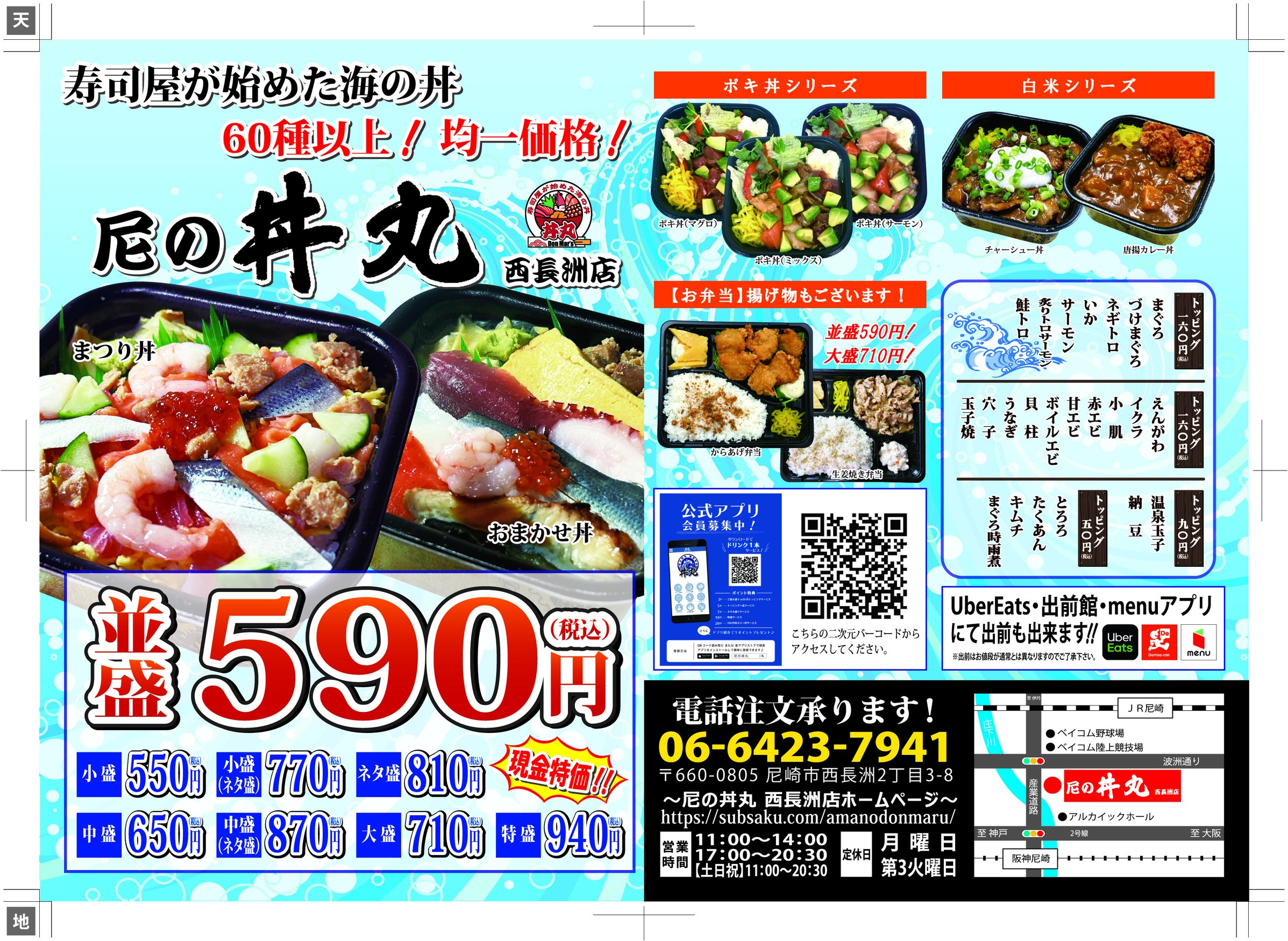 尼の丼丸 西長洲店は、尼崎で新鮮な海鮮丼をお手軽価格で楽しめるお店です。全商品590円からとリーズナブルで、定番のマグロやサーモン、旬の海鮮など70種類以上の豊富なメニューを揃えています。ランチやテイクアウトに最適で、忙しい日でも手軽に新鮮な海鮮丼を楽しめるのが魅力です。和食や寿司が好きな方にもおすすめで、作り置きはせず、鮮度を大切に提供。尼崎 西長洲で海鮮丼を安く美味しく食べたい方はぜひお立ち寄りください。毎日でも楽しめる豊富なラインナップとコスパの良さが自慢です。