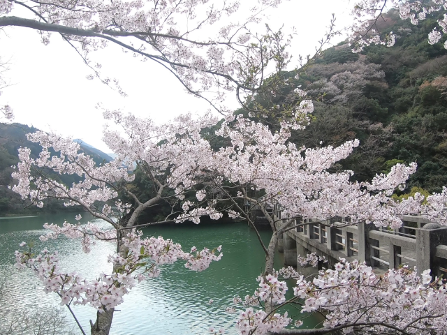 少し足を延ばして、猪鼻第一ダム、第二ダムの湖畔にはたくさんのソメイヨシノが咲き誇り絢爛豪華な春の風情を楽しめます。