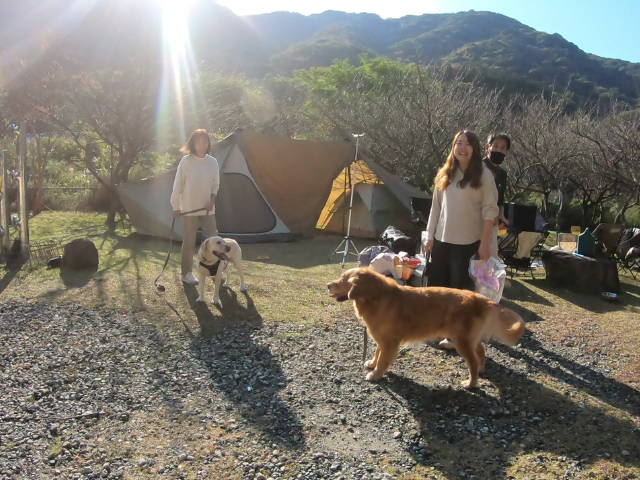 猪鼻谷フォレストパークキャンプ場は、犬と泊まれるキャンプ場としても利用されています。ワンちゃんと一緒に川遊びや海水浴を楽しめる環境が整っており、自然の中でのびのびと過ごせます。