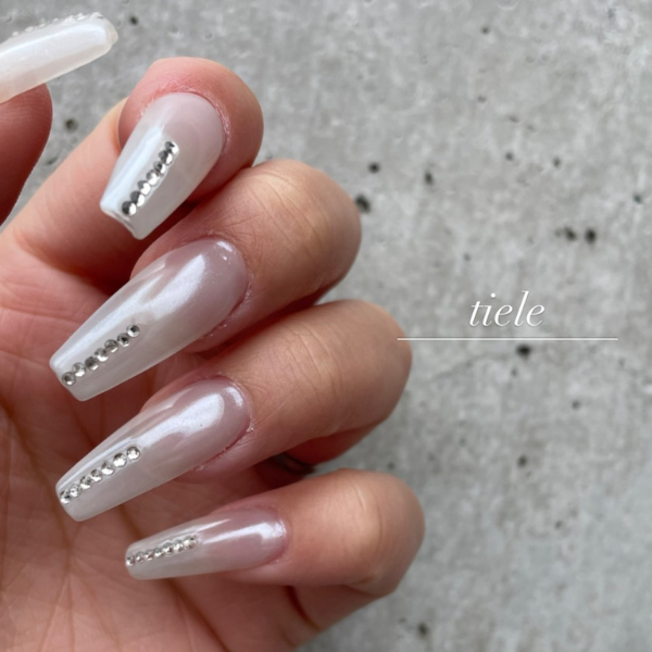 tieleでは、派手すぎず上品な“こなれ感”のあるネイルを大切にしており、シンプルネイルからトレンドを取り入れたキラキラネイルまで幅広く対応しています。特に奥行きのある輝きが魅力のマグネットネイルはカラーの種類も豊富で、キラキラ・ウルウルとした透明感のあるデザインを楽しみたい方に人気のメニューです。