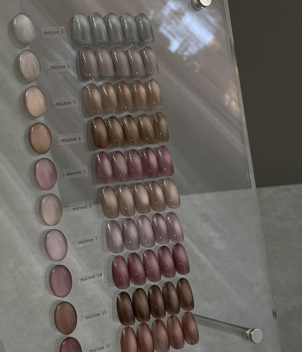 マグネットネイルをお願いしましたが、カラーの種類が多くて選ぶのも楽しかったです。光の角度でキラキラ輝くデザインがとても可愛くて、見るたびに気分が上がります。